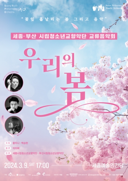 [금요저널] 세종시립청소년교향악단이 오는 9일 오후 5시 세종예술의전당에서 제3회 정기연주회 ‘세종·부산 시립청소년교향악단 교류음악회, 우리의 봄’을 선보인다.
