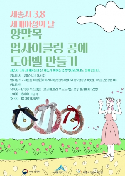 [금요저널] 세종특별자치시 사회서비스원 소속 아이돌봄광역지원센터는 오는 8일 새롬동 ‘여성친화거리’에서 열리는 ‘세종시 3.8 세계여성의 날’ 기념 행사에 체험 부스를 운영한다고 밝혔다.