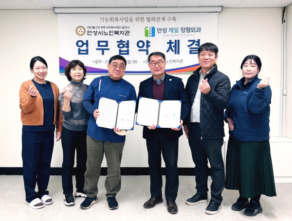 이날 협약식에 참석한 안성제일정형외과 김건범 원장은 “안성시노인복지관의 어르신들의 기능회복을 위한 활동을 함께 할 수 있어 기쁘고 앞으로도 어르신들의 건강한 미래에 도움이 되고 싶다”고 말했다.
