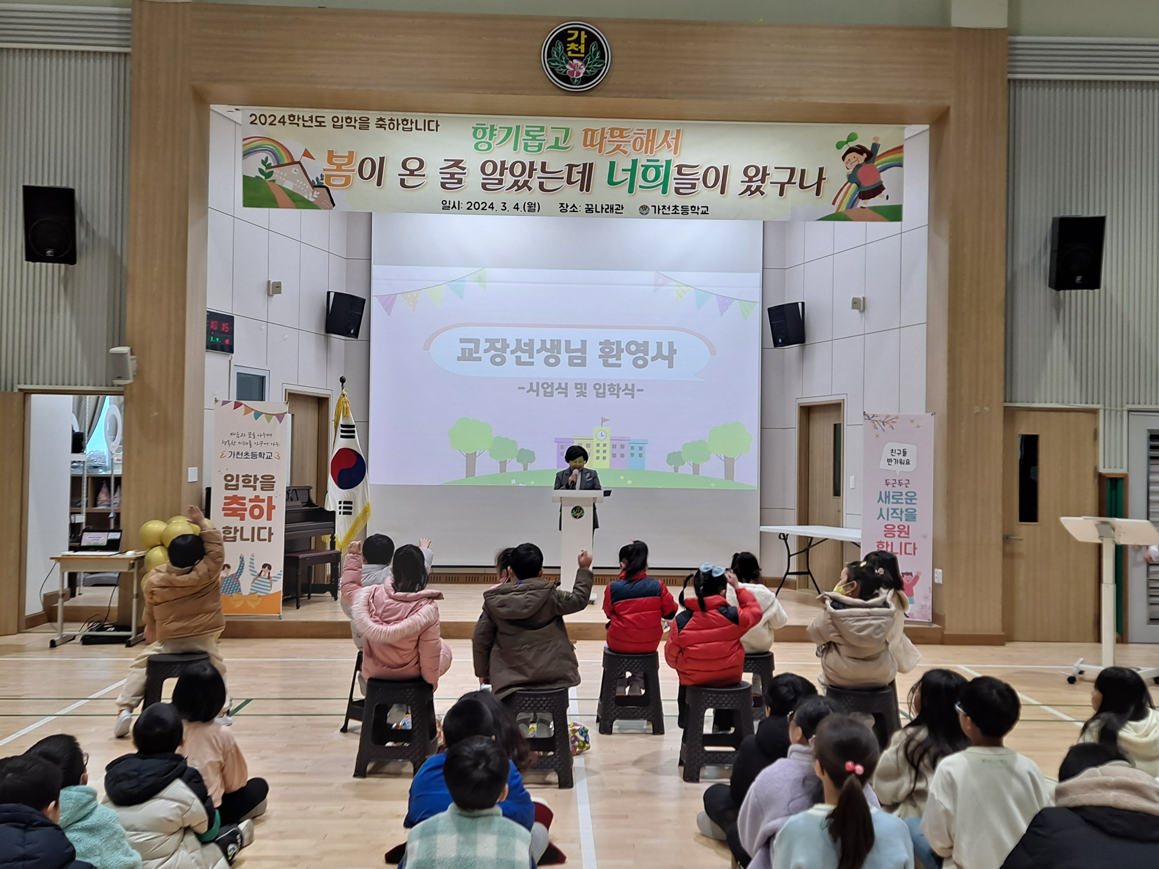 3월 4일 월요일, 가천초등학교 및 병설유치원(교장 강의선)에서는 학부모가 참석한 가운데 초등학교 신입생 4명, 유치원 6명을 대상으로 ‘2024학년도 입학식’을 가졌다.