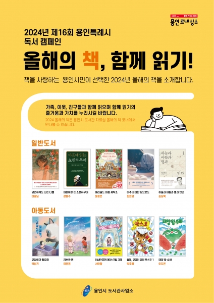 [금요저널] 용인특례시는 시민 설문조사를 통해 ‘2024 올해의 책’ 10권을 선정했다고 7일 밝혔다.