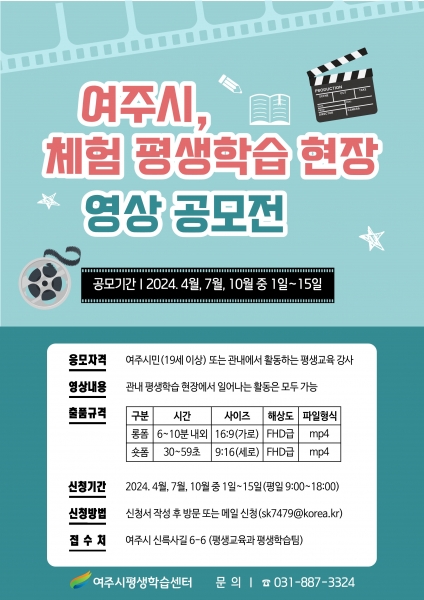 작년에는 여주시평생학습센터 위주의 활동영상을 제공해 왔으나, 올해는 여주시 전역에서 일어나고 있는 평생학습 소식을 생생하게 전달하기 위해 영상 공모를 추진한다.