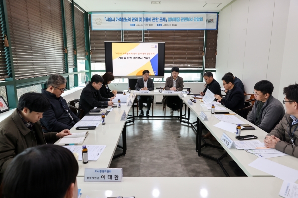 간담회는 효율적인 가축사육 제한구역 지정기준을 마련하고 조례 개정에 관한 관계 부서의 의견을 듣고자 마련됐으며 김선옥 의원과 환경정책과장, 동물축산과장, 건축과장 등 10명이 참석했다.