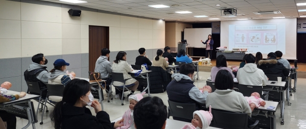 이번 특강은 맞벌이 부부 등 평일 교육 참여가 어려운 임신 20주 이상 예비부모를 대상으로 전문강사가 산후우울 예방 및 산후관리, 신생아돌보기 등을 코칭하는 방식으로 운영됐다.