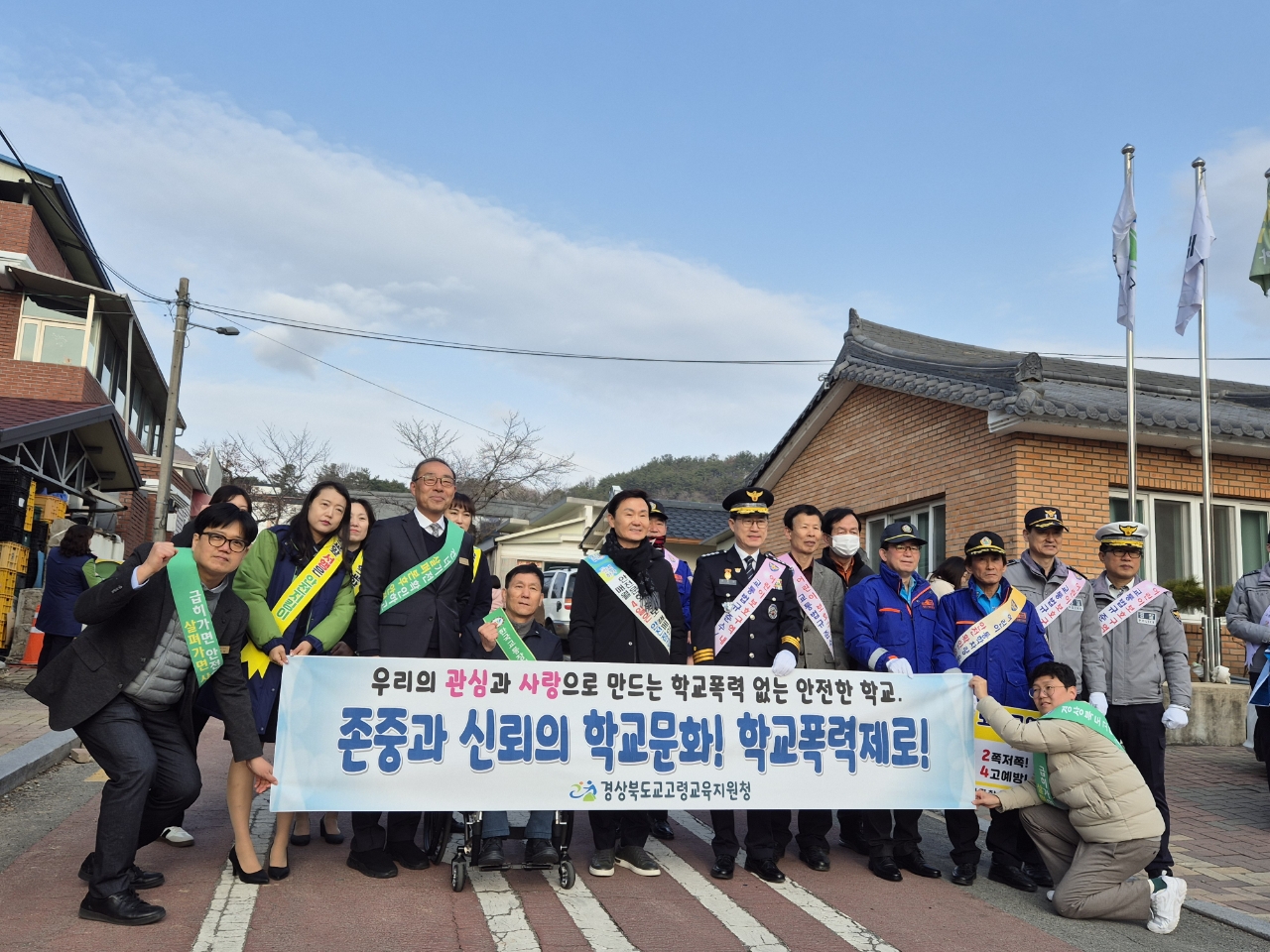 경상북도 고령교육지원청(교육장 김호상)은 2024년 3월 12일(화) 오전 고령초등학교 정문에서 교육청 직원, 학교 교사 및 학생, 경찰 관계자 등 30여 명이 함께 ‘새학기 맞이 등굣길 학교폭력 예방 캠페인’을 실시하였다.