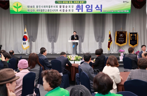 [금요저널] 이상일 용인특례시장은 지난 12일 시청 컨벤션홀에서 열린 용인시새마을회 제16대 황정순 부녀회장과 제12대 서경순 문고회장 취임식에 참여해 관계자들을 격려했다.