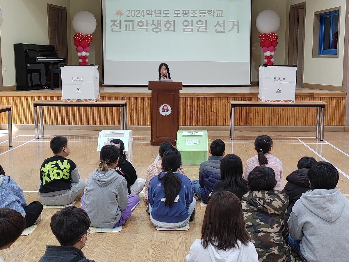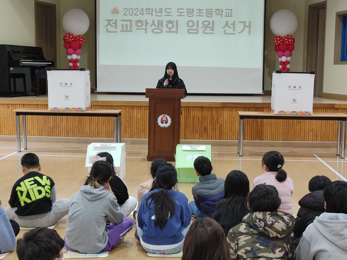 □ 도평초등학교(교장 오정선)는 3월 12일(화) 3~6학년 학생들을 대상으로 전교학생회 임원 선거를 실시하였다. 본교 학생들은 이번 선거를 통하여 민주시민으로서의 자질을 기르고 공정한 선거를 경험하는 시간을 가졌다.