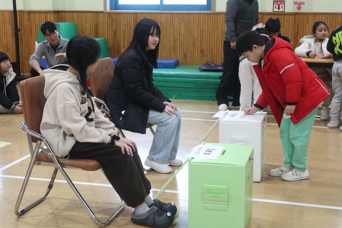 □ 선거 당일인 3월 12일(화) 3교시, 백학관에서 선거 사전교육 및 후보자 소견 발표를 한 후 3~6학년 31명을 대상으로 투표가 진행되었다. 선거 결과 전교 회장에는 6학년‘이OO’학생이 선출되었으며, 6학년 전교 부회장에는‘하OO’학생이, 5학년 전교 부회장에는‘김OO’학생이 선출되어 1년 동안 도평초 전교학생회를 이끌어 나가게 되었다.