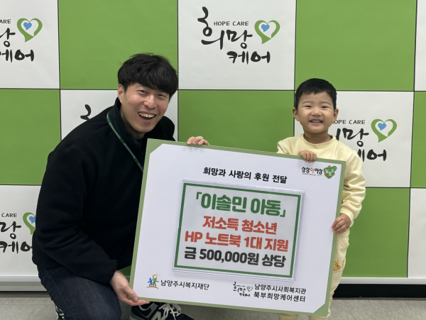 이번 후원은 50만원 상당의 노트북 1대로 북부희망케어센터가 지난달 23일부터 이달 7일까지 진행한 모금 사연의 학대 피해 청소년에게 전달될 예정이다.