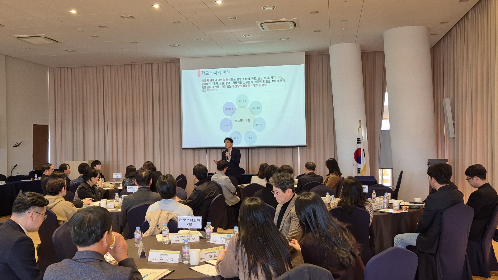 심의위원들의 역량 강화를 위해 기획된 이번 연수에서는 하경태 교감(기계초등학교)의 강의를 통해 학교폭력의 이해, 심의위원회의 이해와 절차, 심의위원회에서 유의점 등을 공유함으로써 현장 적응력을 높였다. 특히 사례를 통한 점수 판단에 대한 안내를 통해 심의위원들이 갖추어야 할 실질적인 대응 역량을 강화하였다.