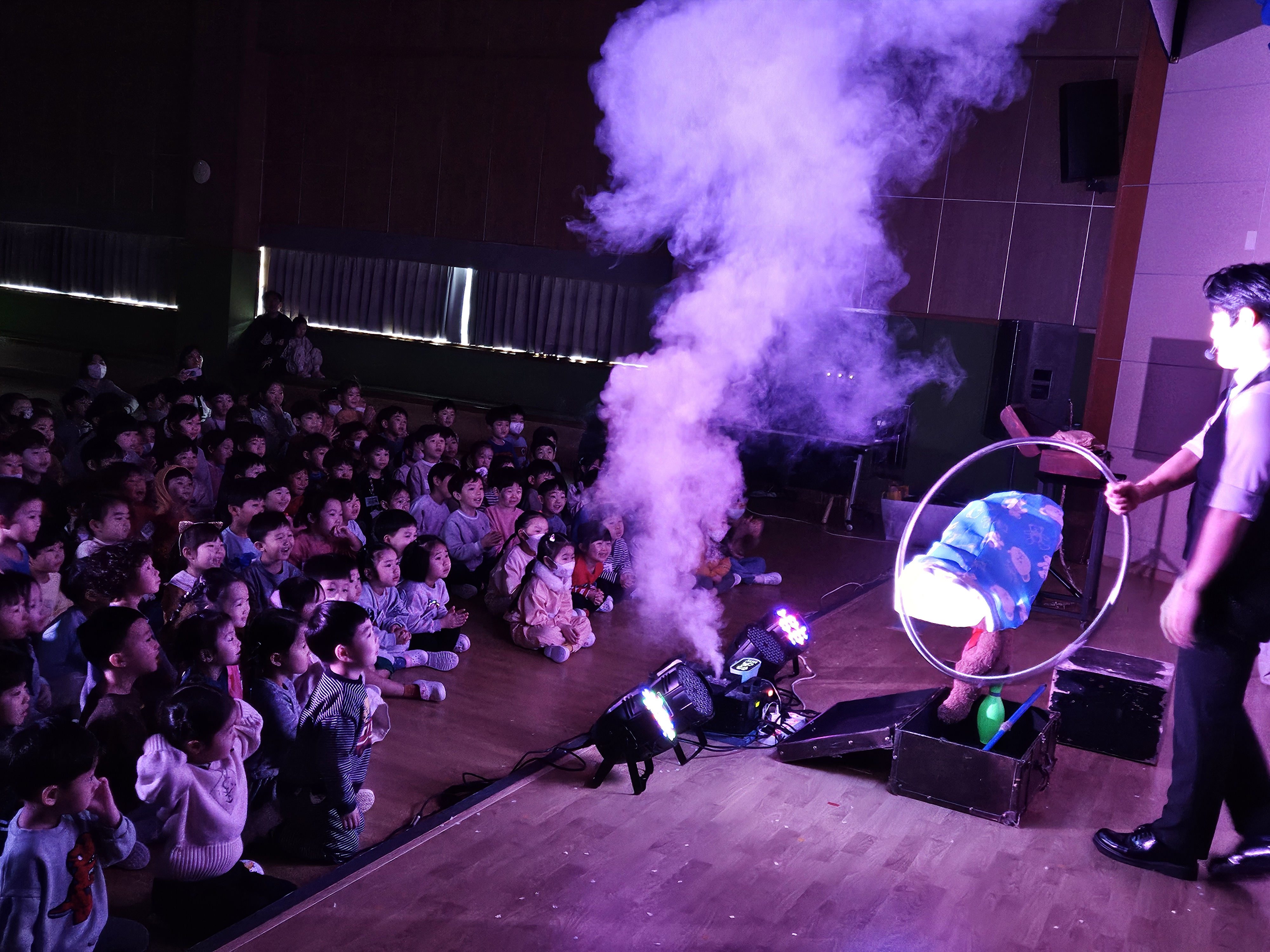 안전한 공연 관람과 관람 예절을 지키기 위해 안전교육과 공연 관람 시 예절교육을 마친 후 질서를 지켜 관람할 수 있도록 하였다. ‘어린이 매직쇼’ 공연은 스카프 마술, 동전 마술, 공중부양 마술, 스카프 마술, 그림자극의 순서로 진행되었고 빛을 사용한 그림자극 관람을 통해 창의력과 상상력을 기르고 친구들과 즐거운 추억을 만들 수 있는 뜻깊은 시간이 되었다.