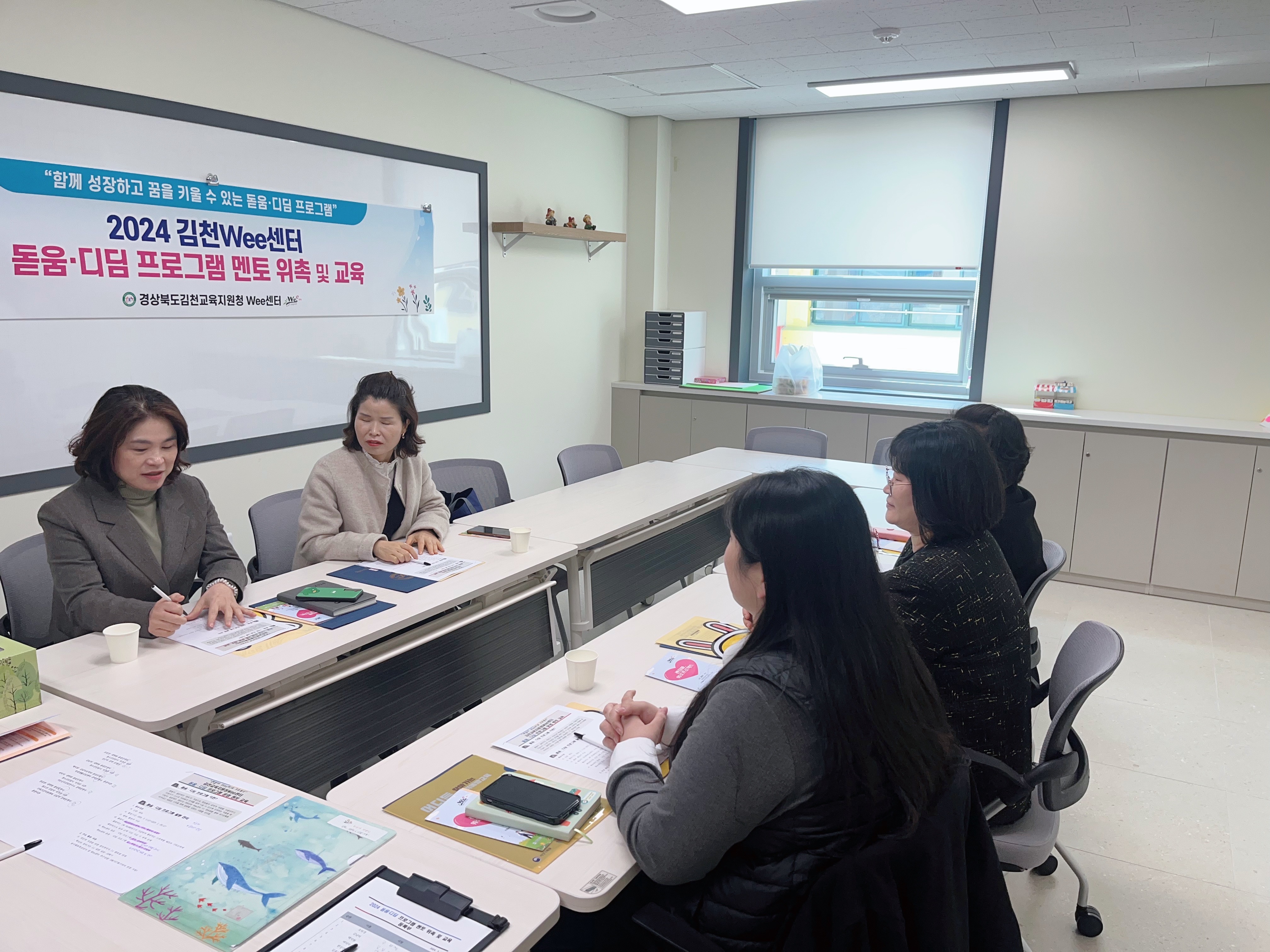 경상북도김천교육지원청(교육장 공현주) Wee센터는 3월 8일(금) 10:30 Wee센터 집단상담실에서 돋움‧디딤 프로그램 돋움이(멘토)를 대상으로 교육을 실시하였다.