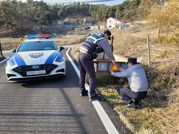 또한, 면사무소와 협조해 일방통행로 노면표시 재정비와 발산교차로에서 두만리 1번 국도상에 농기계가 통행을 자제하도록 플래카드를 부착할 예정이다.