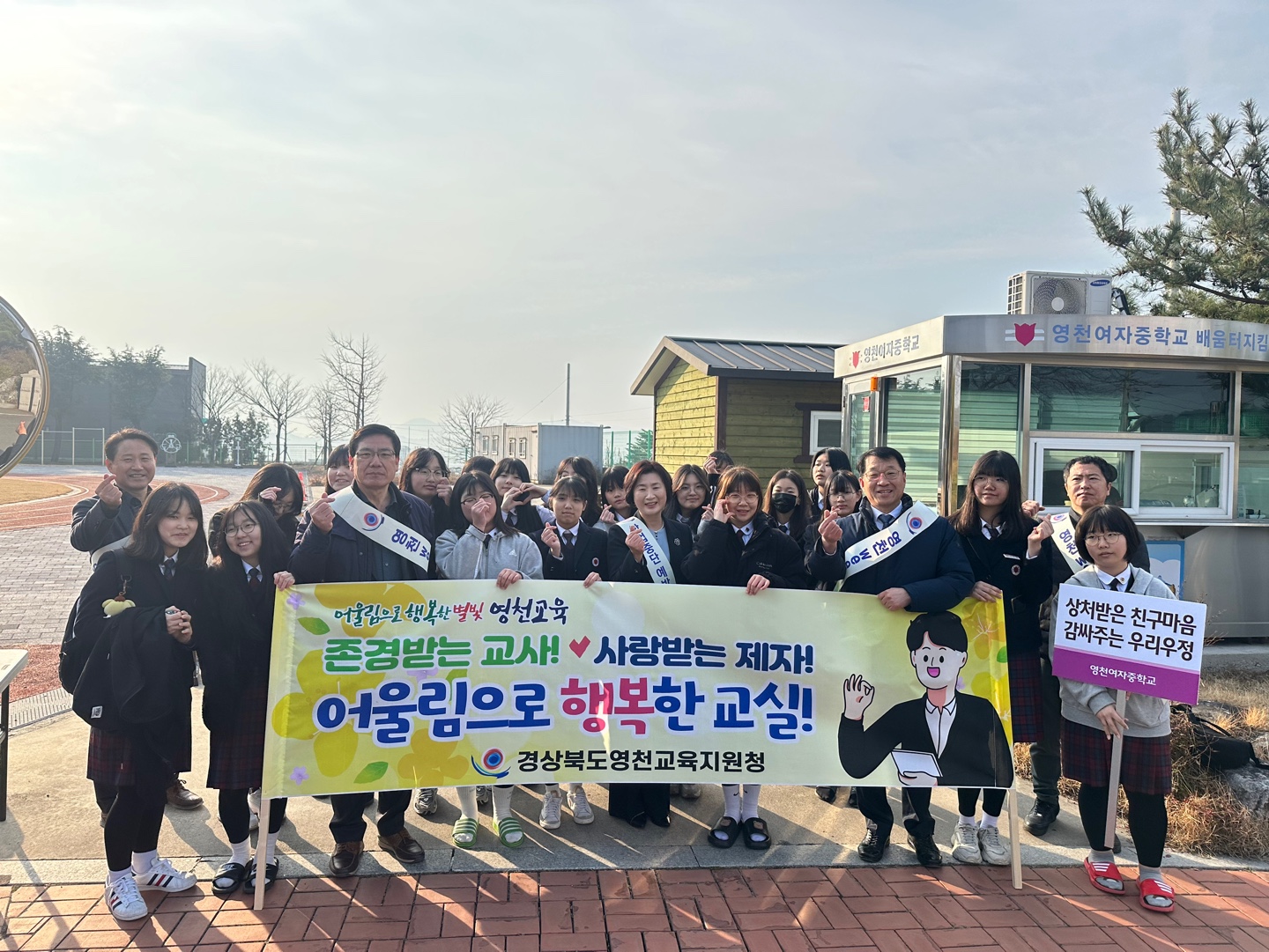 □ 경상북도영천교육지원청(교육장 김희수)은 14일(목) 영천여자중학교에서 영천여중 학생 및 교직원을 대상으로 교육활동 보호, 학교폭력 예방 및 생명 존중 캠페인을 실시하였다.
