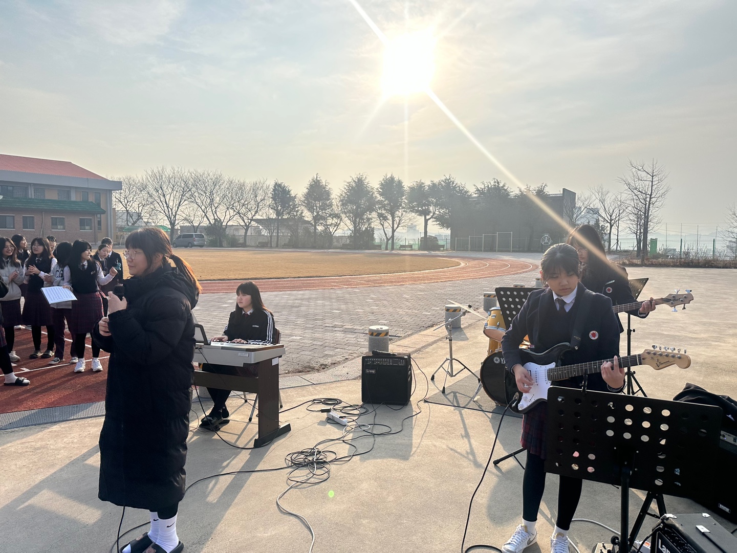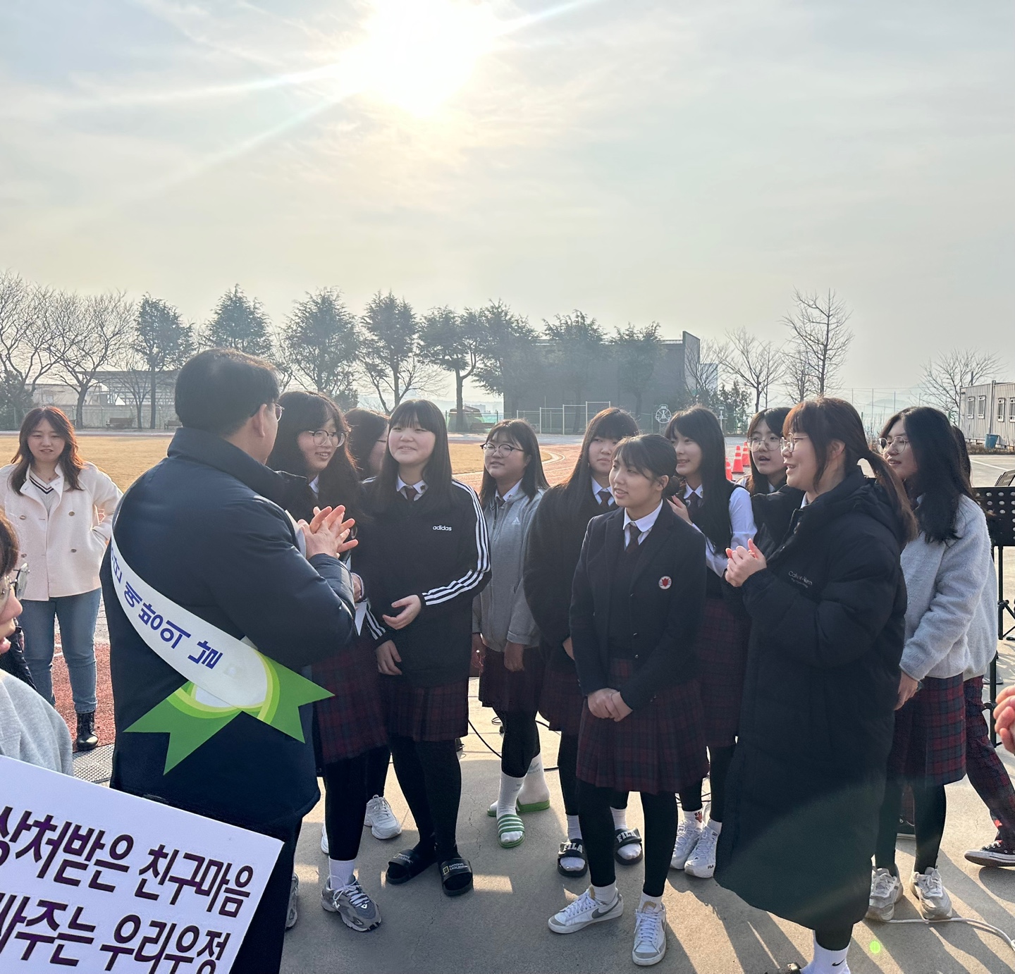 □ 특히, 영천여자중학교 밴드부 ‘크레센도’ 학생 12명은 학생들의 등굣길 연주를 통해 학생과 교원을 위로하는 이벤트를 하여 눈길을 끌었다. 교육지원청 관계자 및 학생, 교원이 어우러져 어깨띠와 다양한 내용의 현수막으로 등교하는 학생과 출근하는 교원을 응원하였다.