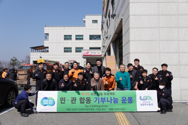이번 나눔 운동은 조창근 남양주소방서장을 포함해 소방공무원 전 직원과 의용소방대, 소방정책자문위원회 등이 동참해 지난 2월 22일부터 3월 13일까지 기부 생활물품을 모집하고 14일 포장 및 운송 작업에 나섰다.
