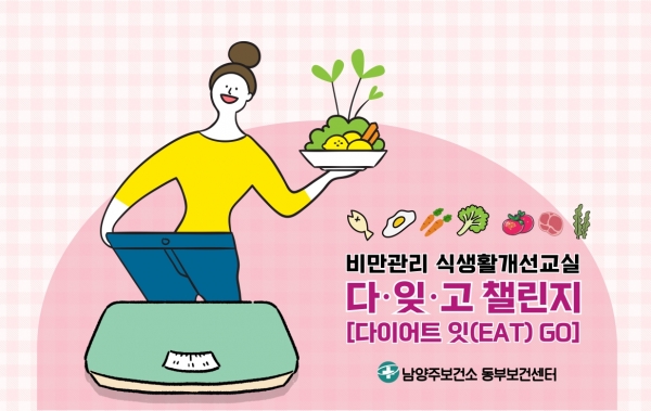 [금요저널] 남양주보건소 동부보건센터는 오는 18일부터 비만으로 인한 질환을 예방하기 위해 비대면 프로그램 ‘다·잊·고 GO) 챌린지’ 및 ‘탄탄고지’1기 프로그램을 운영한다.