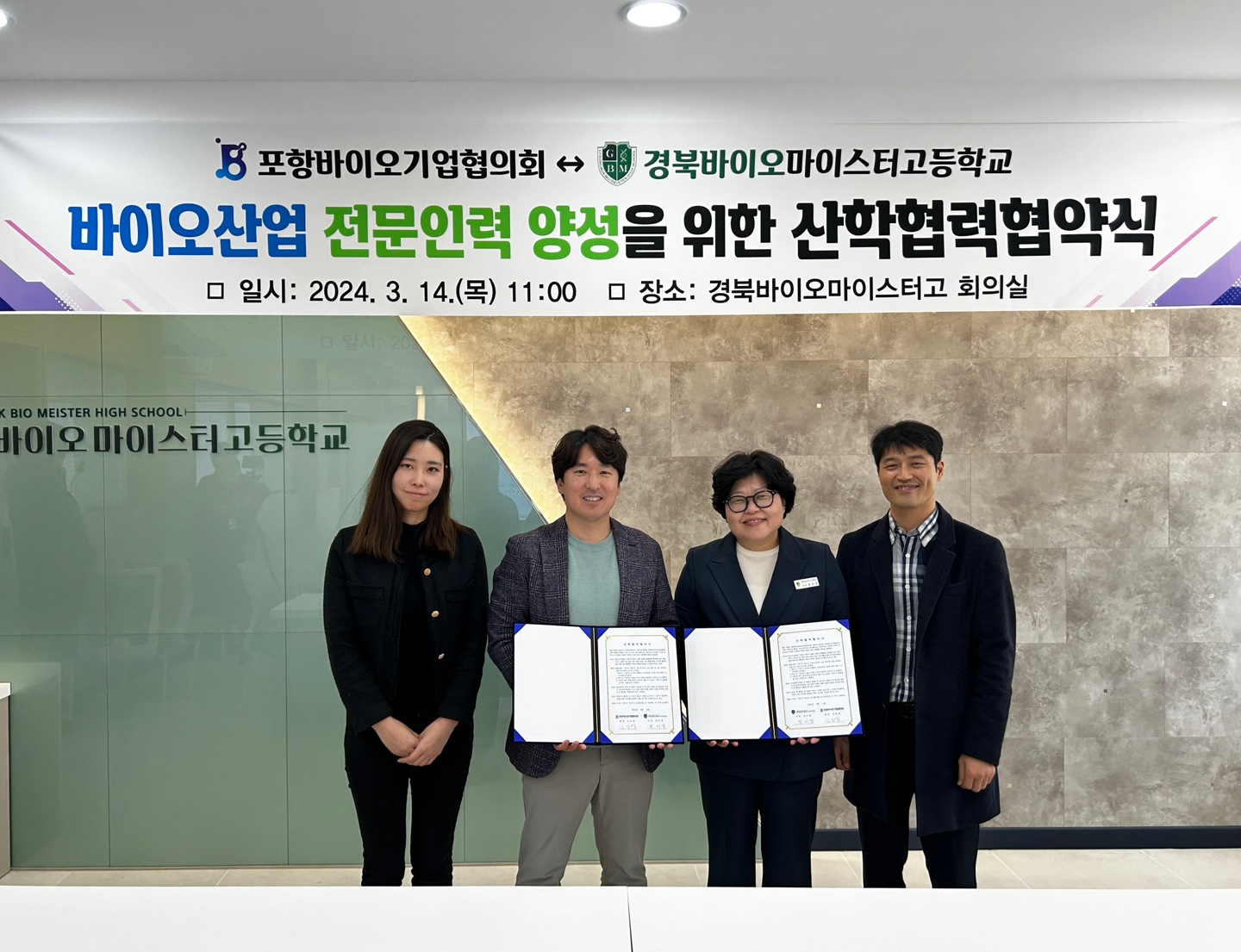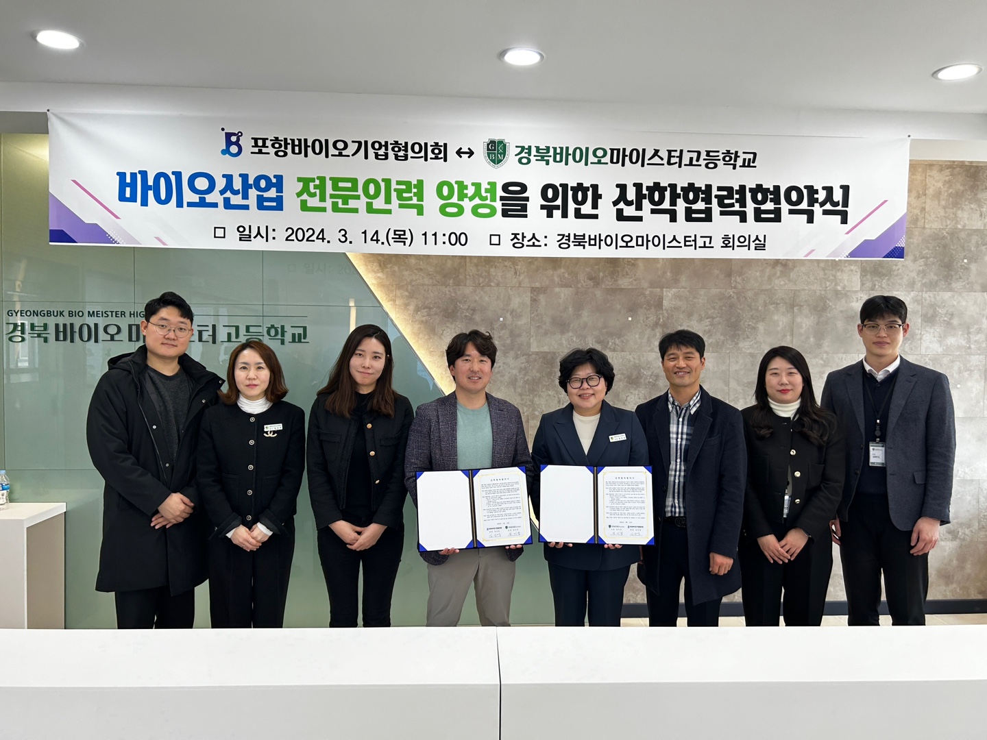 김성영 대표(포항바이오기업협의회 협의회장)는 “이번 산학협력 협약을 통해 한층 더 활기찬 바이오 산업으로의 성장 발판을 마련하게 되었다.”며“경북바이오마이스터고 학생들의 현장실습 및 채용 연계를 적극적으로 추진할 계획”이라고 밝혔다.