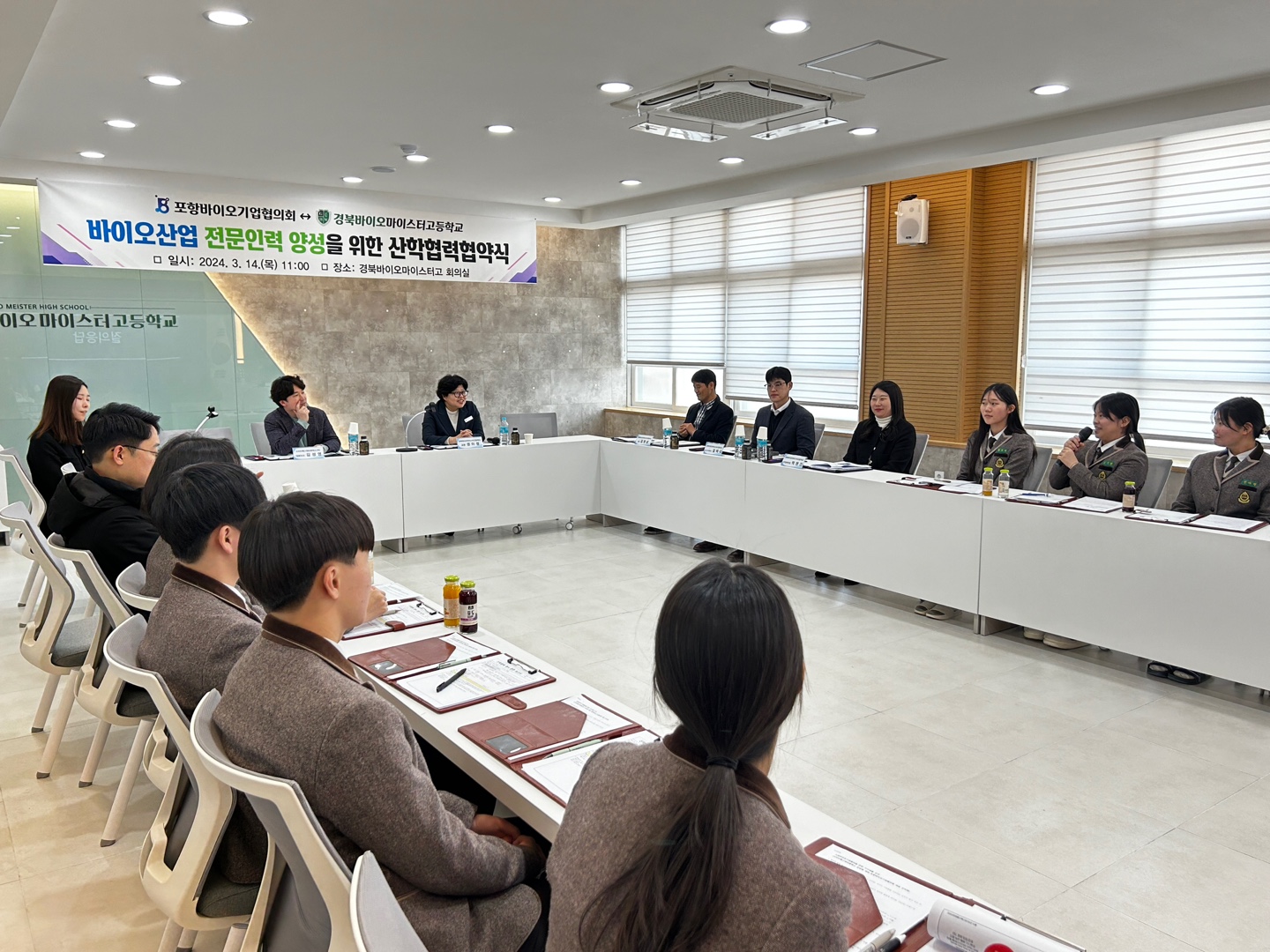경북바이오마이스터고가 14일, 경북 포항에 본사를 둔 바이오헬스케어 기업 27개가 모인 포항바이오기업협의회와 산학협력 협약을 체결했다고 밝혔다.