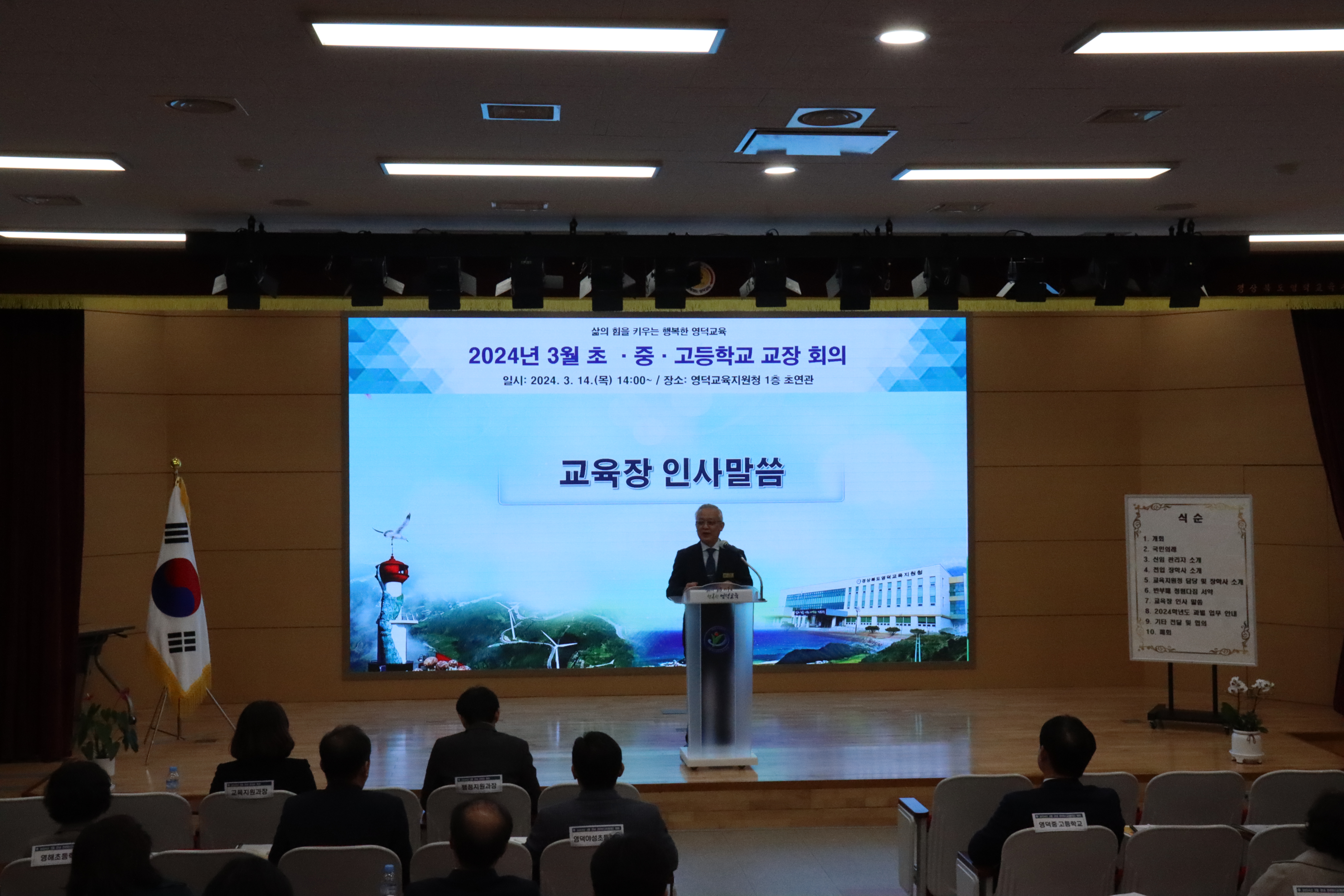 □ 이날 관리자 회의는 ‘삶의 힘을 키우는 행복한 영덕교육’의 2024 상반기 주요 업무 추진 안내하였다.
