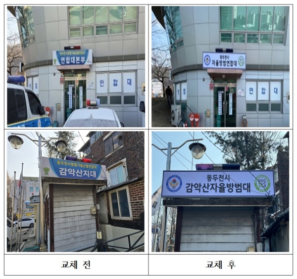 [금요저널] 동두천시는 최근, 정기적인 야간순찰 등 범죄예방 활동을 통해 지역 치안 유지에 힘쓰고 있는 동두천시 자율방범대 7개 초소의 간판을 전면 교체했다.
