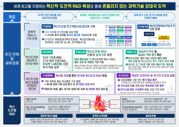 혁신적·도전적 R&D는 고난이도, 높은 불확실성, 큰 파급효과, 실패가치 인정 등을 특징으로 해 우리나라 국가 R&D 생태계 전반에 새로운 역동성을 부여하는 ‘심장’과 같은 기능을 수행할 것으로 기대된다.