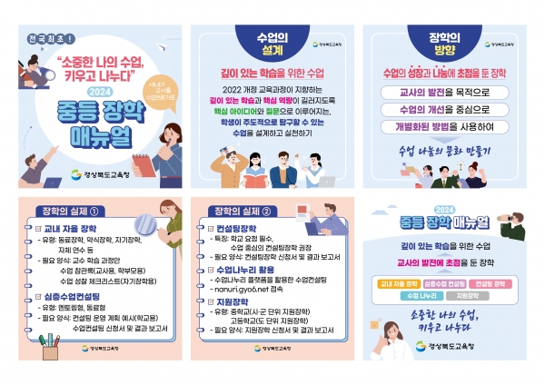 [금요저널] 경북교육청은 새 학년 출발 시기에 맞추어 현장에서 사용할 수 있는 2024학년도 중등 맞춤형 장학 매뉴얼을 전국 최초로 제작해 도내 중학교와 고등학교에 배부했다고 18일 밝혔다.