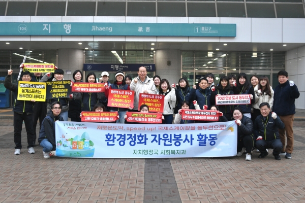 [금요저널] 동두천시 사회복지과는 16일 새봄맞이 일환으로 지행역 일대에서 환경정화 자원봉사를 진행했다.