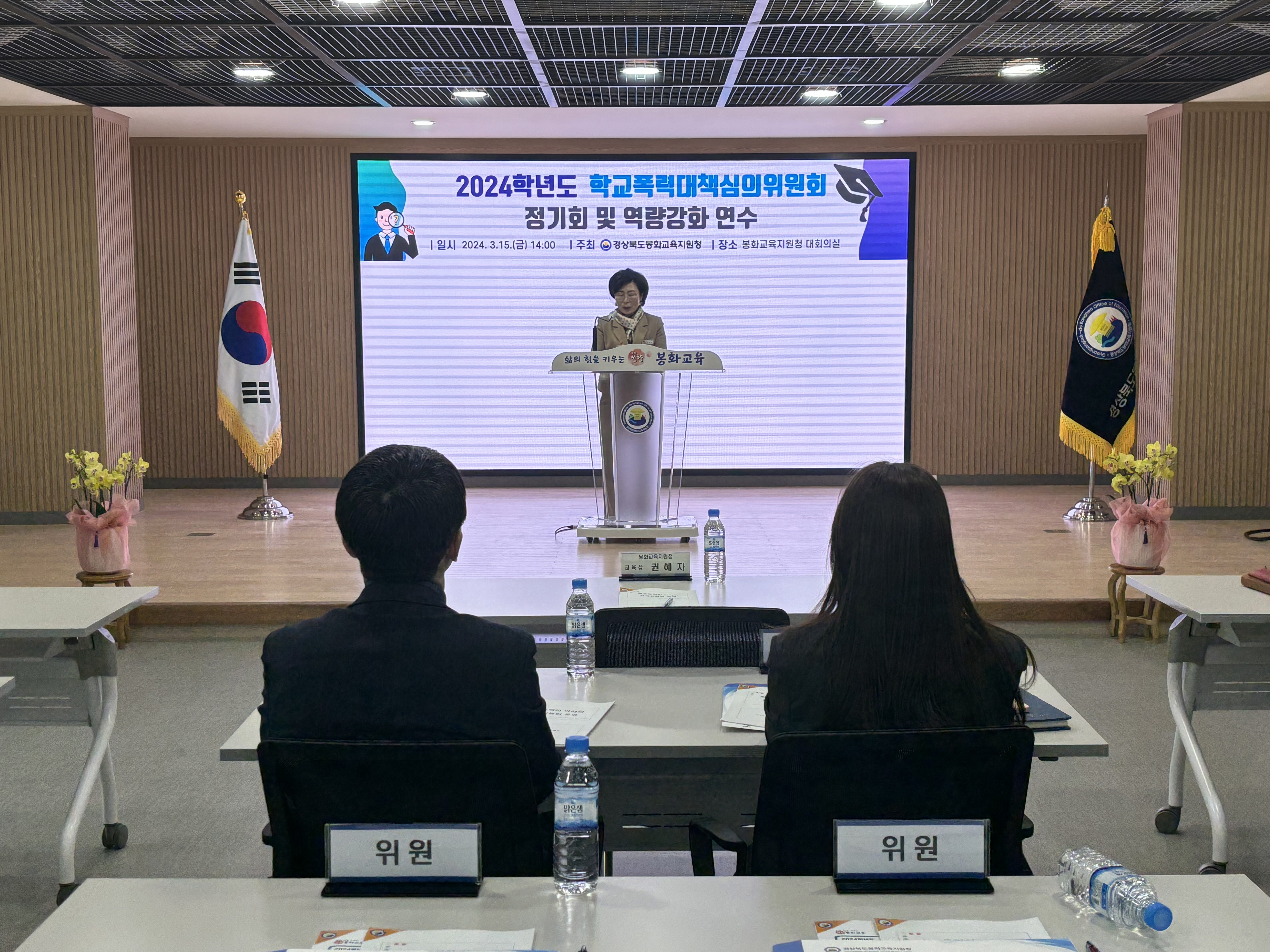□ 경상북도봉화교육지원청(교육장 권혜자)은 지난 3월 15일, 학교폭력 사안처리의 전문성 및 공정성을 강화하여 내실있는 학교폭력대책심의위원회를 운영하고 새롭게 정착되는 제도(학교폭력제로센터, 전담조사관 등)의 안정적 운영을 위하여 2024학년도 학교폭력대책심의위원회를 대상으로 정기회 및 역량강화 연수를 실시했다.