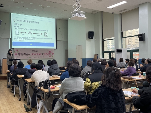 이번 교육은 △2024년 장애인활동지원사업의 변경지침 안내 △주요 관련 사업안내 △개정된 취업규칙 안내 등 기본교육과 장애인식개선교육으로 구성됐으며 특히 장애인식교육은 장애 관련 사회적 이슈와 동향 파악을 통해 장애에 대한 이해도를 높여 장애인활동지원사로서의 역량과 책임 의식을 강화했다.