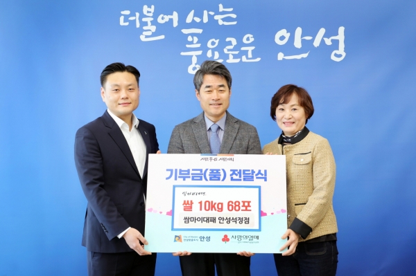 [금요저널] 안성시는 쌈마이대패 안성석정점으로부터 지난 15일 쌀 10kg 68포를 기부받았다고 밝혔다.