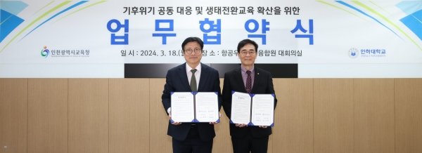 이번 협약으로 인천시교육청은 학교에 전문성 있는 생태전환교육 프로그램을 지원하고 인하대학교 기후위기대응사업단은 몽골, 일본, 중국 등 여러 나라와의 협력과 인천시 환경교육센터, 인천연구원과의 협력 경험을 바탕으로 인천 학생들의 기후위기 대응과 생태전환관련 사업 및 교육과정을 공동 기획·운영하고 학술정보를 지원한다.