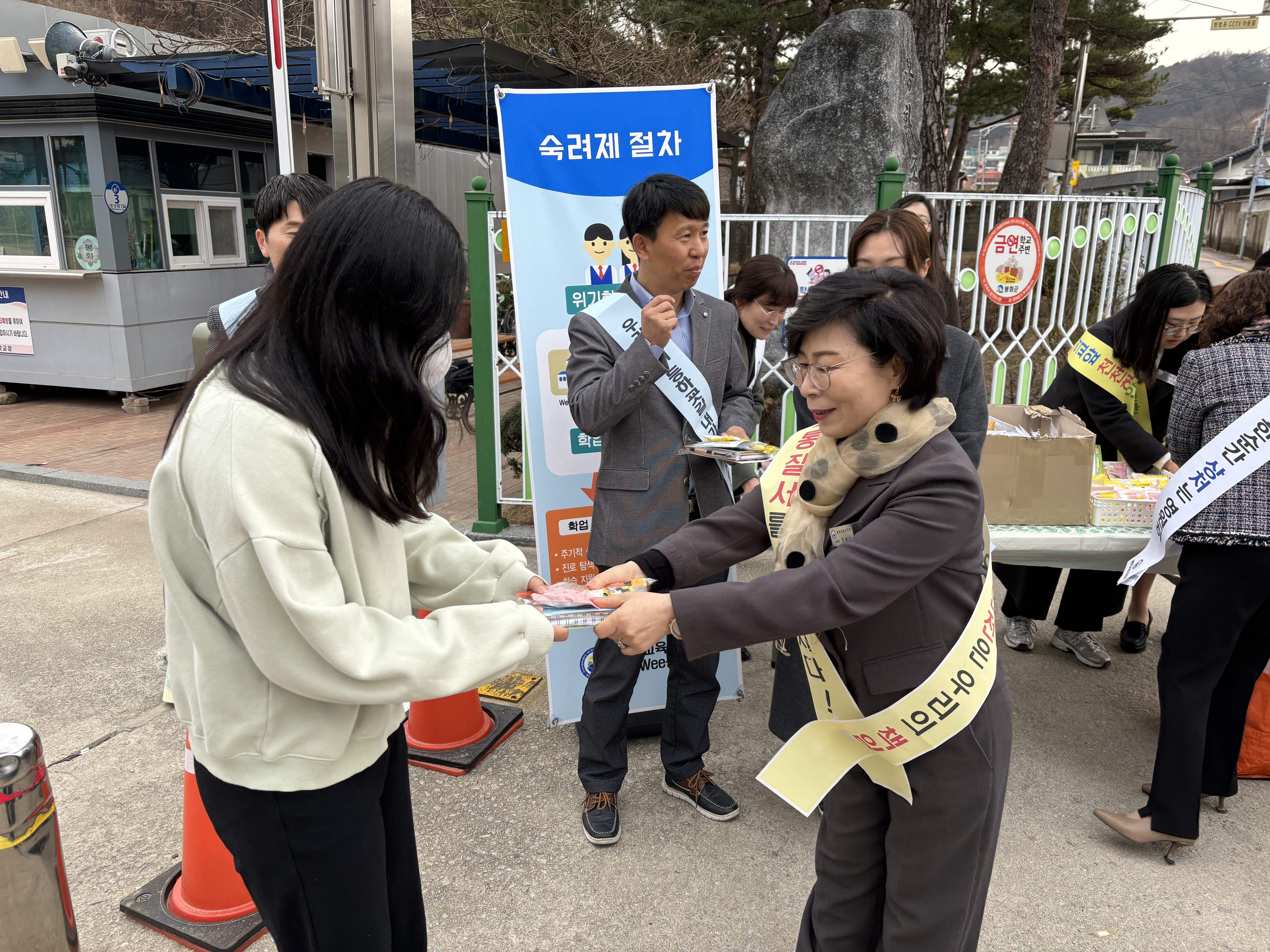 □ 이번 캠페인에서는‘1단 멈춤! 2쪽 저쪽! 3초 동안! 4고 예방!’을 외치며 학생들이 어린이 보호구역에서 좌우를 잘 살피며 천천히 지나다닐 수 있도록 지도했다. 이와 더불어 Wee센터에서는 “학업중단숙려제”를 홍보하며 학생들을 격려했다.