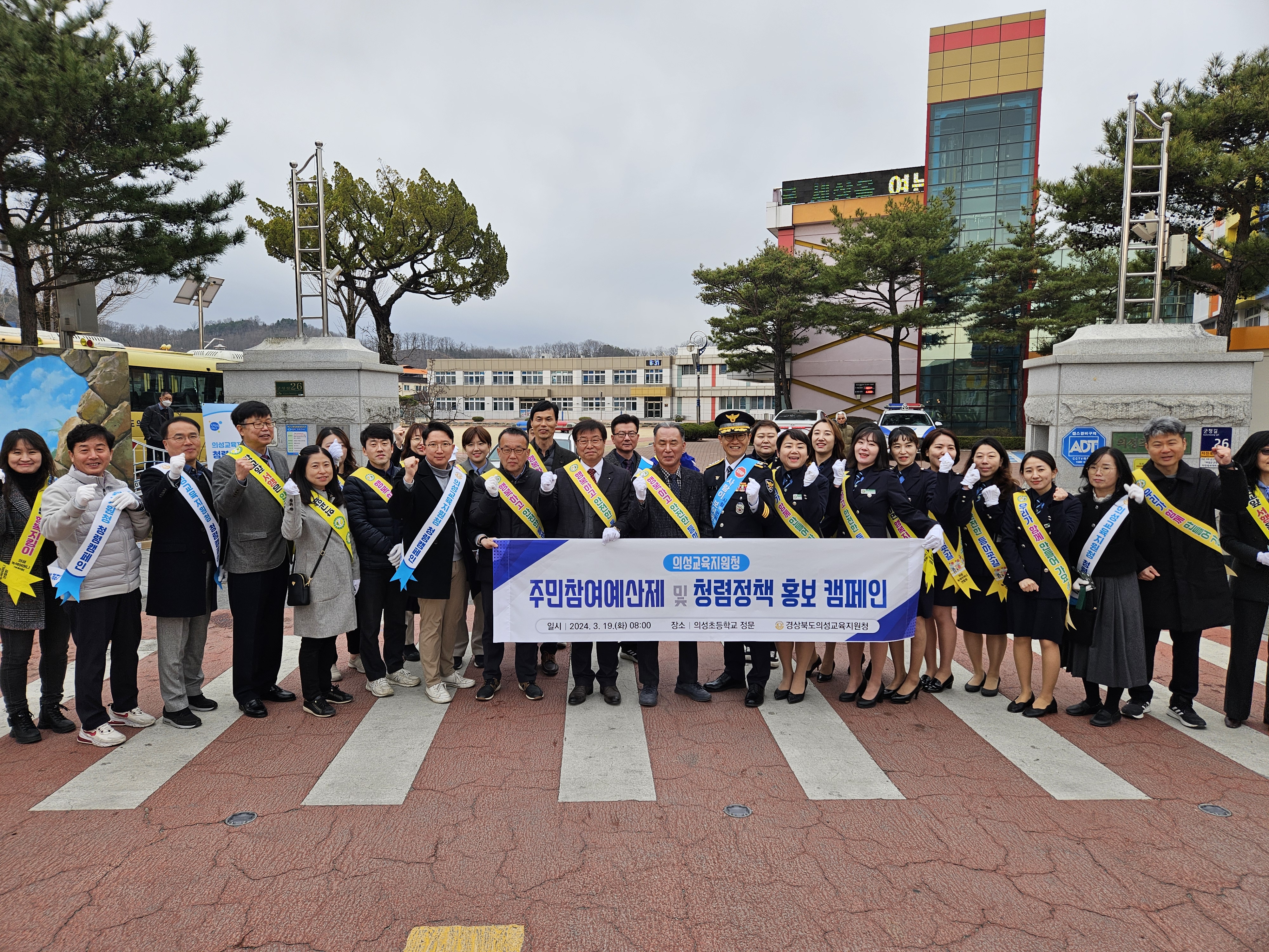 경상북도의성교육지원청(교육장 박명호)은 3월 19일(화) 의성초등학교 정문에서 주민참여예산제 및 청렴정책 홍보 캠페인을 실시했다.