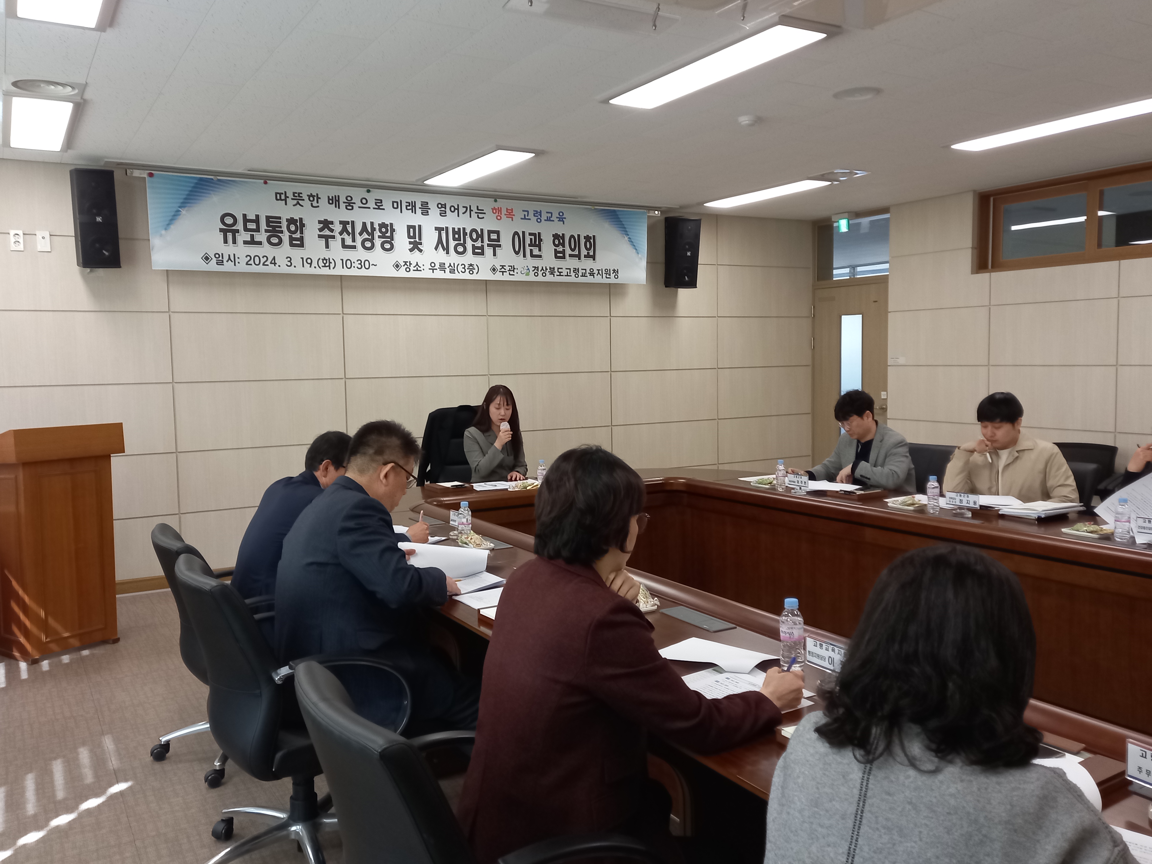 경상북도고령교육지원청(교육장 김호상)은 3월 19일(화) 10:30부터 고령교육지원청 우륵실에서 유보통합 추진 및 지방업무 이관 협의회를 개최하였다.