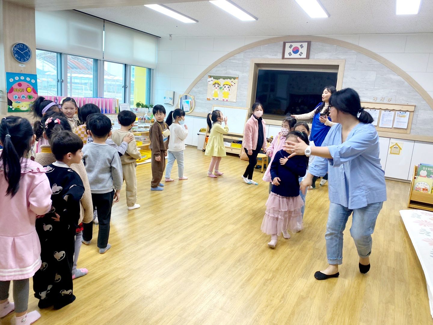 □ 연극 놀이가 끝나고 유아들은 “엉덩이가 올라갔다 내려오는게 웃겼어요. 애벌레를 구해줄 때 마음에 바람이 부는 것 같았어요.”하고 말하였다.