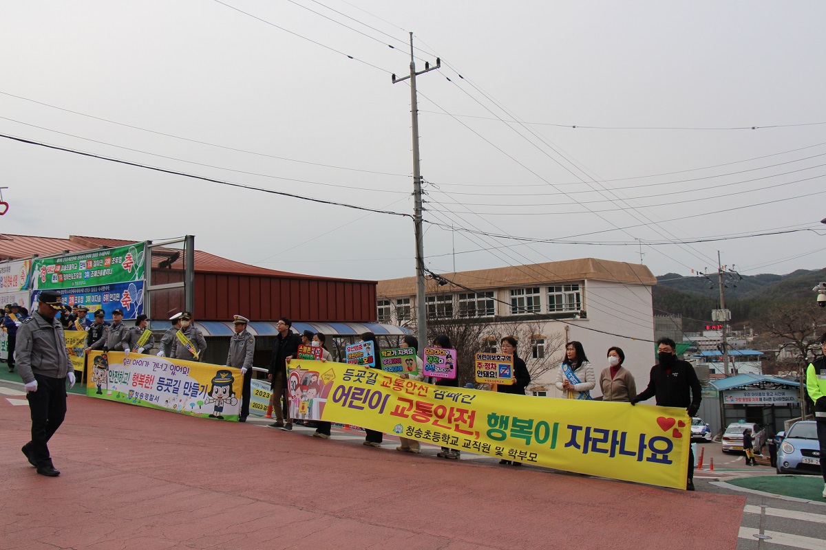 □ 청송초등학교(교장 허영희)는 학생들이 안심하고 통학을 할 수 있는 학교 환경을 조성하고자, 3월 19일(화) 오전 8시부터 청송초등학교 후문 스쿨존에서 등굣길 교통안전 캠페인을 실시했다.