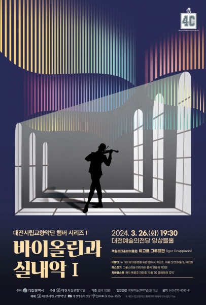 [금요저널] 대전시립교향악단은 26일 오후 7시 30분 대전예술의전당 앙상블홀에서 2024년 첫 챔버 시리즈로 ‘바이올린과 실내악 Ⅰ’을 선보인다.