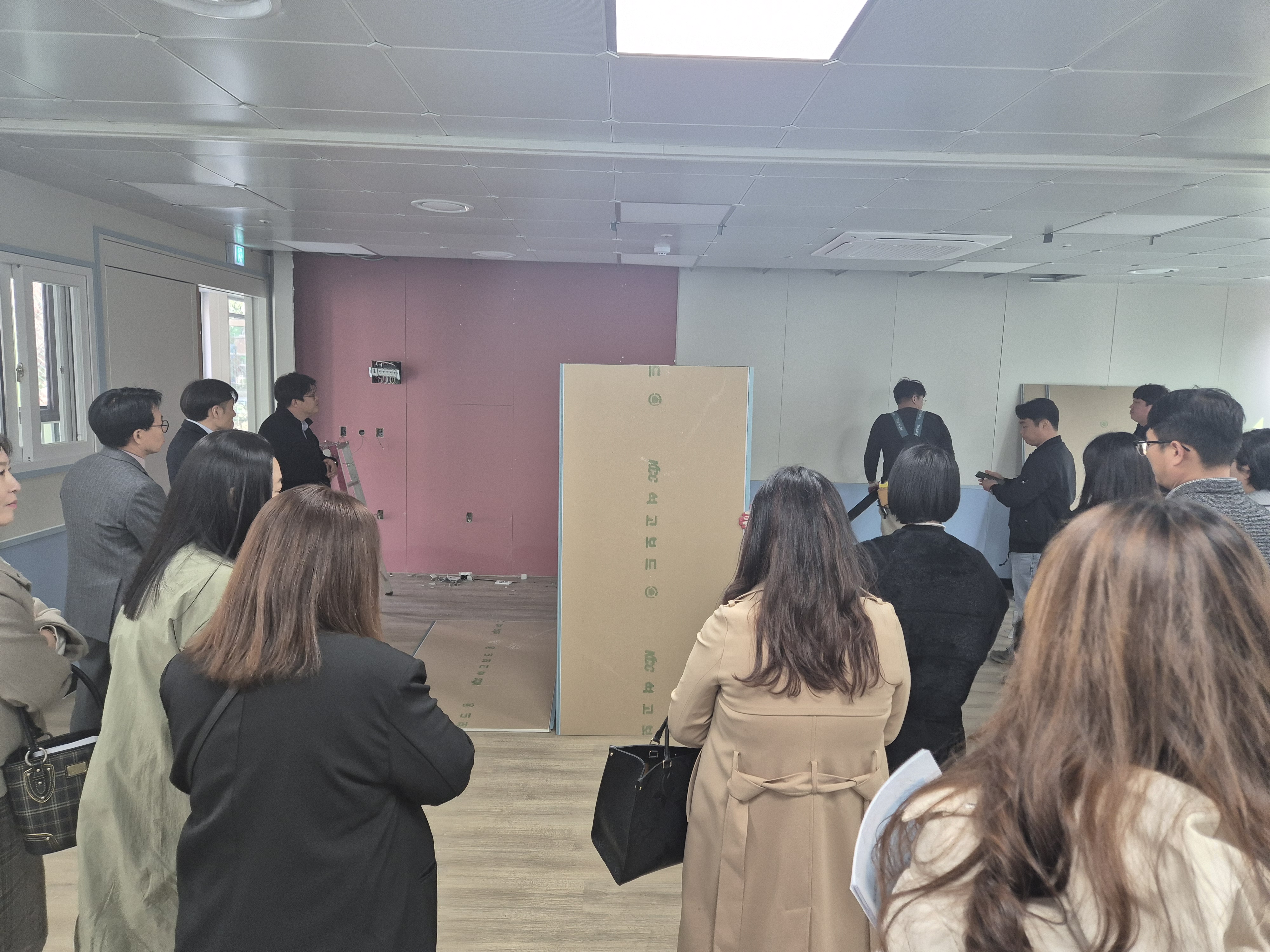 그래서 이날(18일) 학교교육설명회 종료 후 참석한 학부모들을 대상으로 모듈러 교실에 대한 부정확한 사실과 오해 등을 해소하기 위해 학부모가 원하는 1층과 2층의 모듈러 교실 벽면 일부를 업체 관계자가 직접 해체하였고 자재와 곰팡이 유무 등을 육안으로 확인할 수 있도록 하였다. 벽체는 신품 자재 사용을 확인하였고, 참석한 학부모들과 모듈러 교실 학습 환경과 안전에 대한 질의 · 답변하는 시간을 가졌다.
