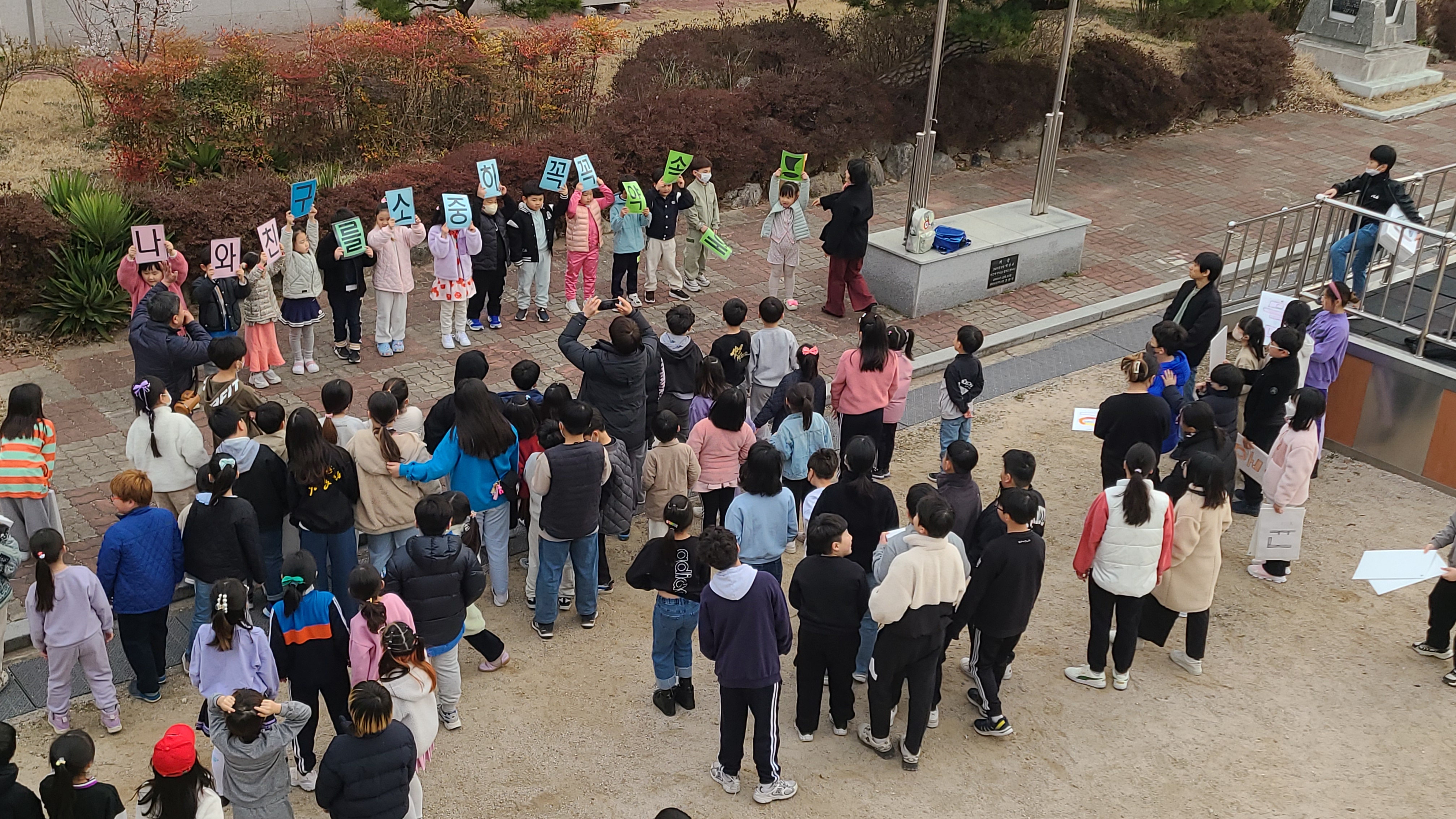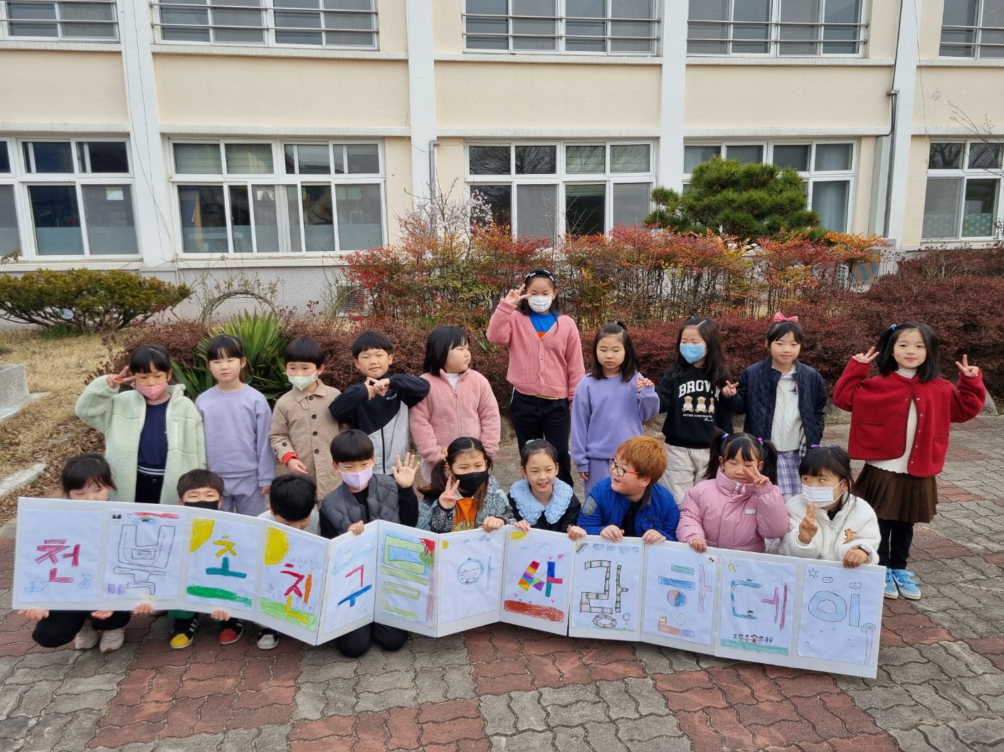 ○ 천북초등학교(교장 서해량)은 3월 19일(화) 등굣길에 전교생이 참여하는 ‘친구야~ 사랑한데이~!’ 슬로건 발표대회를 실시하였다.