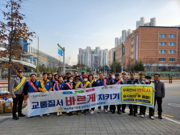 [금요저널] 바르게살기운동 남양주시협의회 다산2동위원회는 지난 18일 다산한강초등학교 주변 사거리에서 안전 문화를 조성하기 위해 민관합동 교통안전 캠페인을 실시했다.
