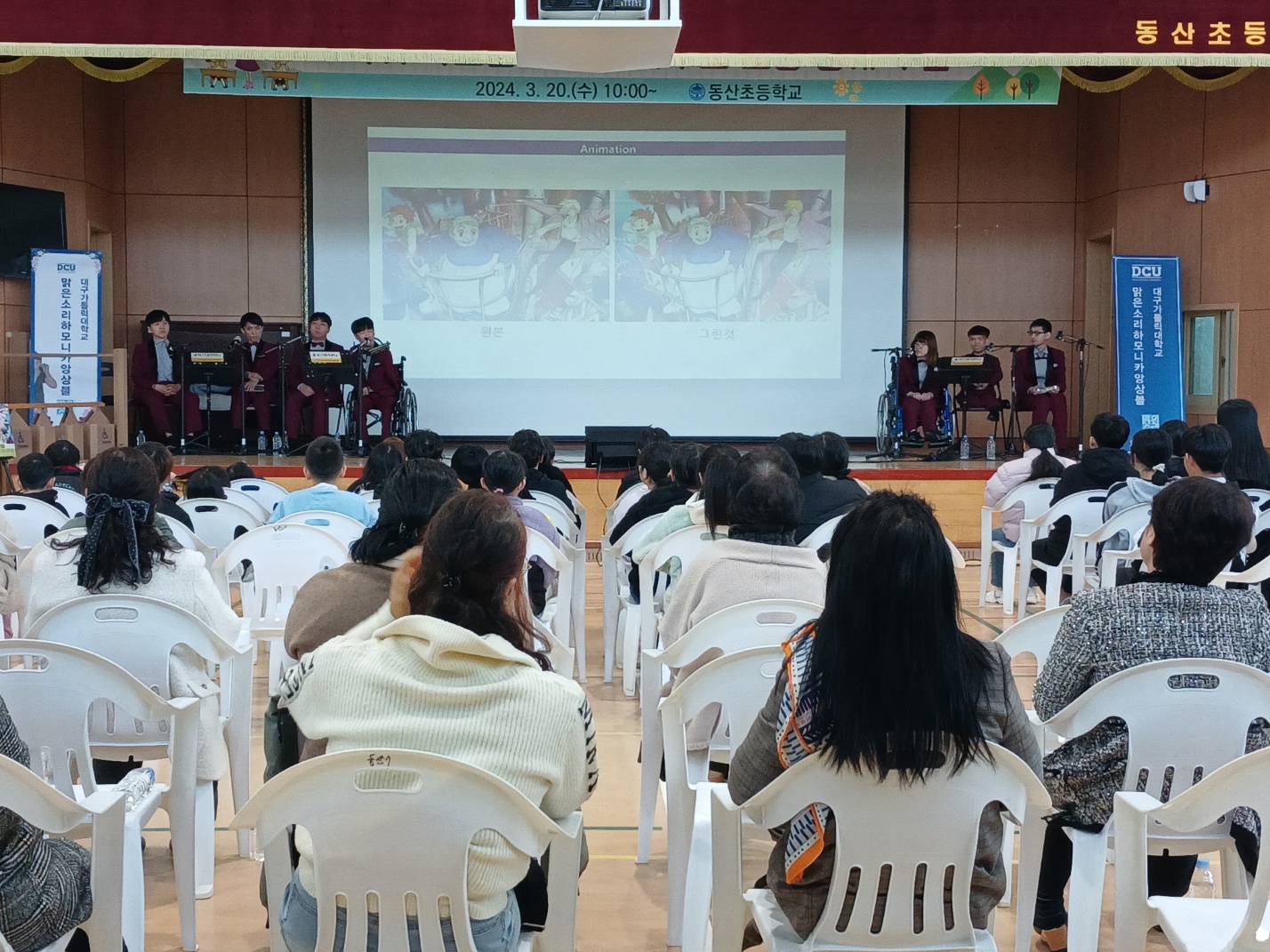 동산초등학교(교장 최정하)는 3월 20일(수) 학부모와 학생들에게 교육적인 가치를 전달하는 학교설명회를 개최했다. 이번 행사에서는 하모니카 연주단을 초대하여 사전 행사로 공연을 선보였다.