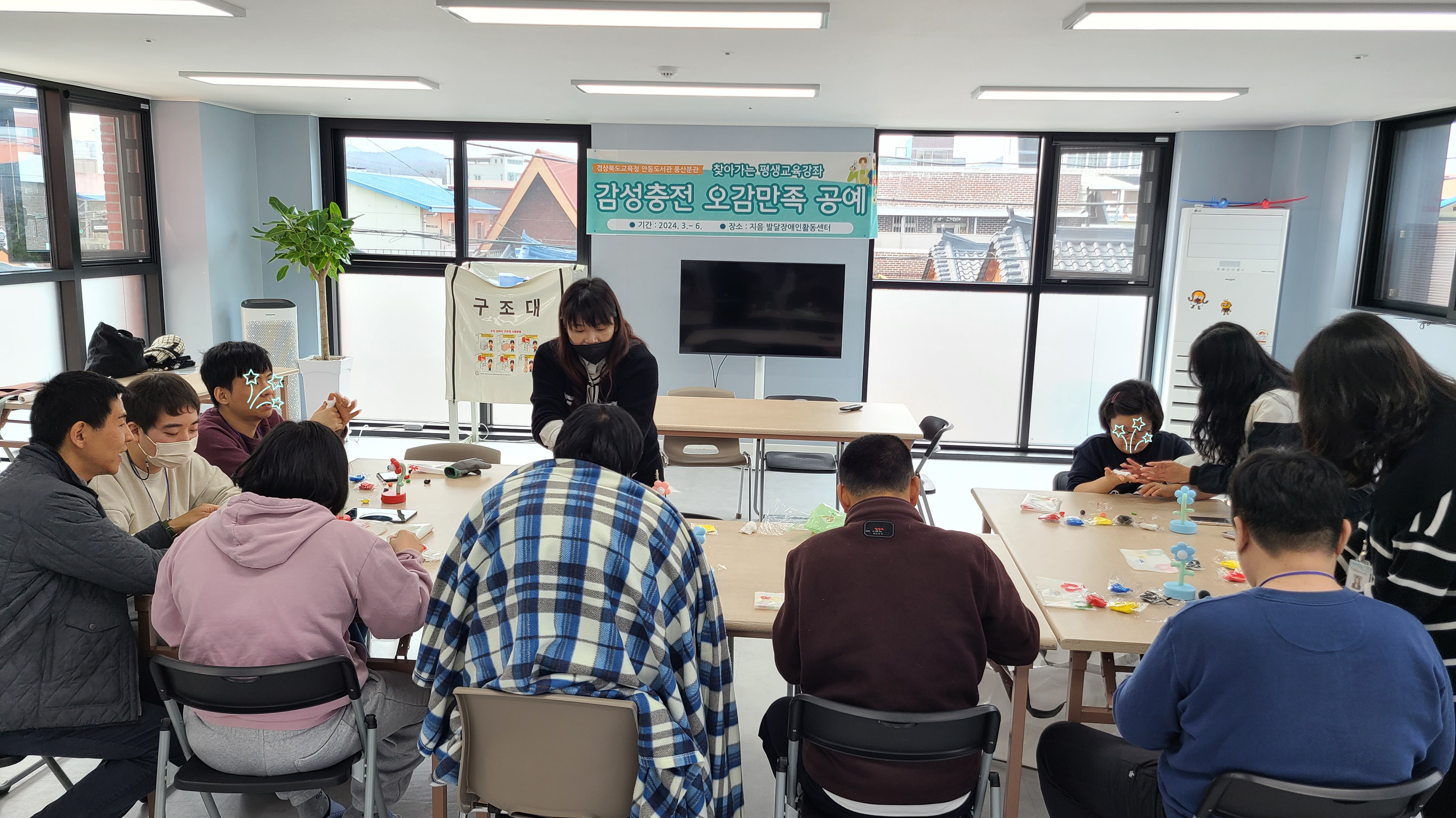 □ 안동시 지음발달장애인활동센터의 발달장애인 청소년 및 성인 23명을 대상으로 감성충전 오감만족 공예, 신체활동 gogo 프로그램을 월 2~3회 운영한다. 이번 프로그램을 통해 건강한 마음과 정서적 안정을 이루며 자신의 재능을 발견하고 공감 소통의 즐거움을 경험할 수 있다.