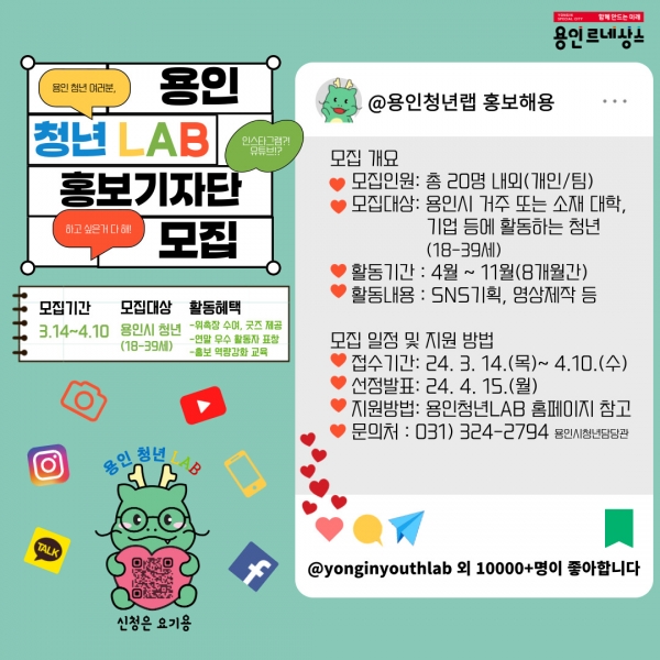 용인특례시, 청년LAB 홍보할 시민 기자단 20명 모집
