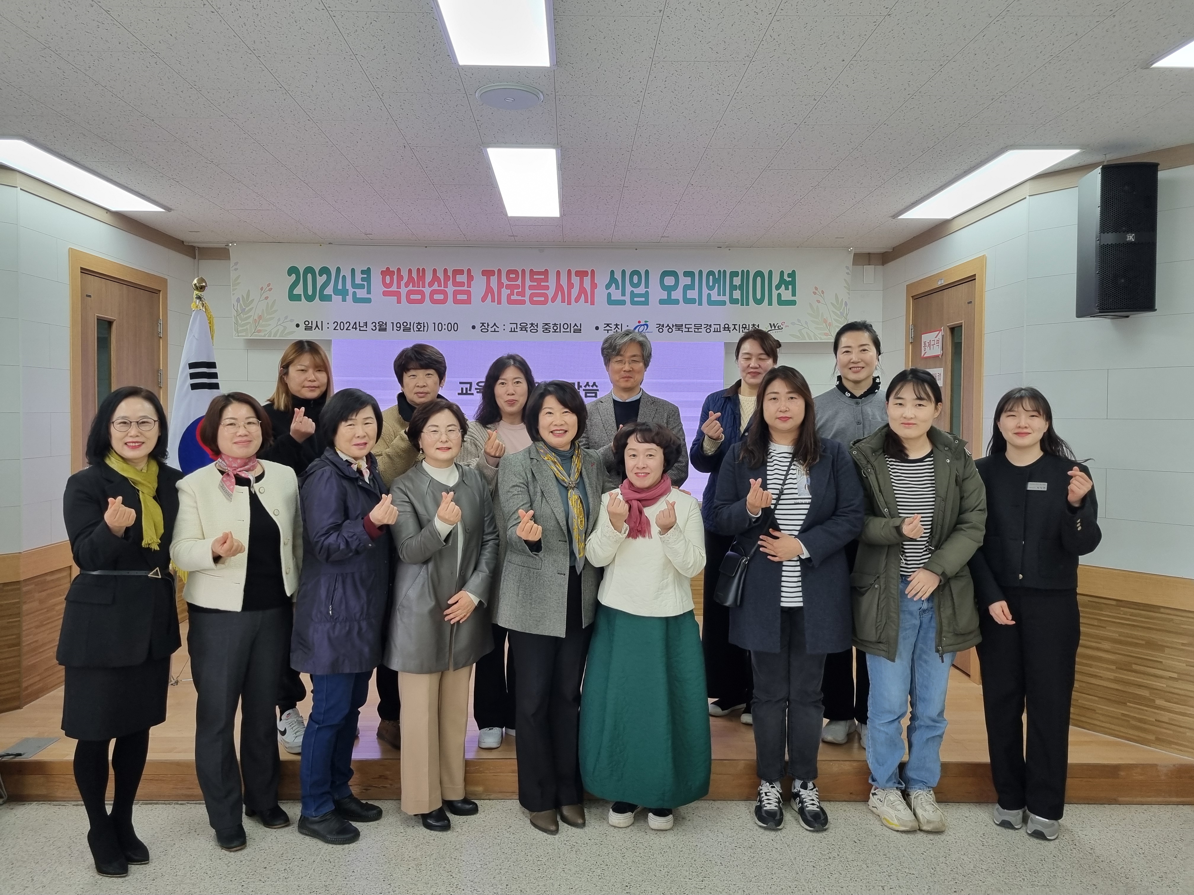 □ 경상북도문경교육지원청(교육장 이경옥) Wee센터는 3월 19일(화) 중회의실에서 관내 학생상담자원봉사자 기존회원 및 신입회원 15명을 대상으로 문경지역 학생상담자원봉사자연합회 신입 오리엔테이션을 실시하였다.