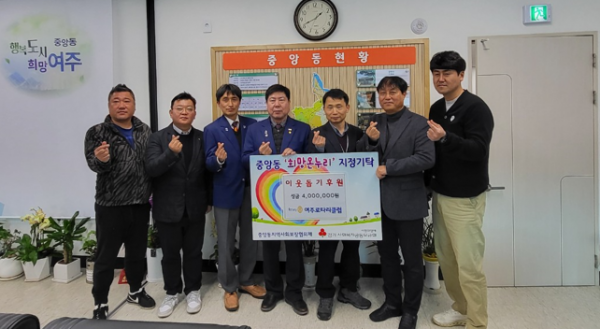 심우봉 중앙동장은 “저소득가구 지원을 위한 복지사업에 노력하고 계신 여주로타리 클럽 회원분들에게 감사의 말씀을 드린다 중앙동은 어려운 처지에 놓인 동민을 적극 발굴하고 지원을 위한 체계 구축을 위해 지속적으로 노력해나갈 것”이라 말했다.