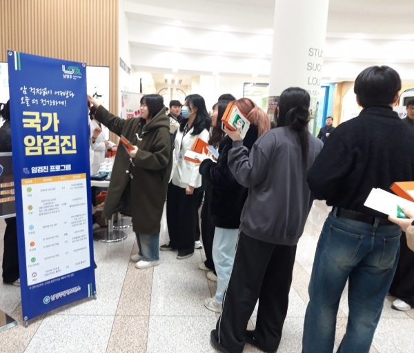 [금요저널] 남양주풍양보건소는 지난 20일 경복대학교 남양주캠퍼스에서 국가암검진 수검을 독려하기 위해 국가암검진사업 홍보를 실시했다.