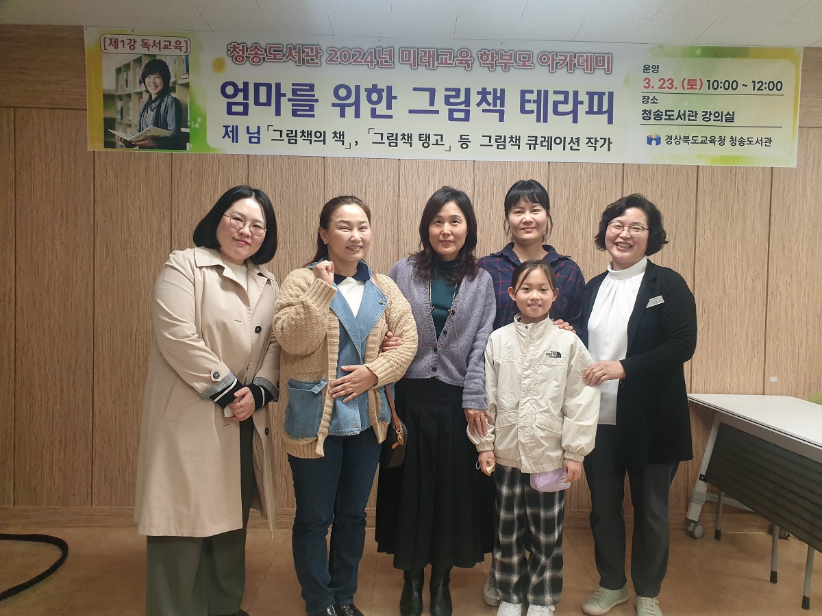 경기도여성가족재단의 찾아가는 그림책 교육 사업 강사로 활동하고 있는 제님 작가는 「청송도서관 2024년 미래교육 학부모 아카데미」특강 강사로 나서 “미래 인공지능 시대를 앞둔 아이들이 가장 갖춰야 할 자질은 공감 능력으로, 자녀와 함께 그림책으로 소통하고 공감하자”라고 말하며 학부모들을 위해 웃음과 행복이 있는 그림책 육아 강의를 선사했다.