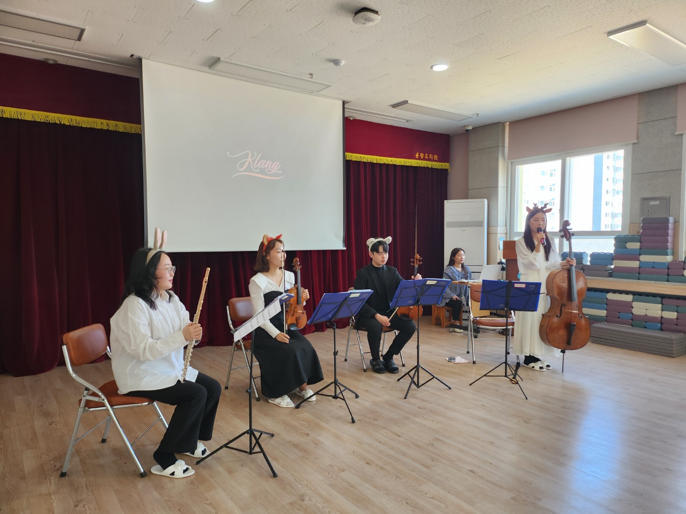 ○ 이번 음악회는 특히 유아들의 눈높이에 맞춘 프로그램으로 해설이 있는 클래식 음악회로 진행하여 클래식 음악을 쉽고 재미있게 접할 수 있는 기회를 제공하였다. 연주자들은 바이올린, 첼로, 플롯 등 다양한 악기로 아름다운 선율을 선사했고 아이들이 음악을 이해하고 즐길 수 있도록 하였다.