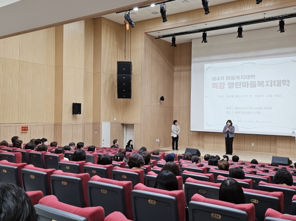 ‘마을복지대학’은 읍·면·동 지역사회보장협의체 위원 및 명예 사회복지공무원을 대상으로 사회복지에 대한 지식을 제공해 복지역량 향상을 돕는 교육과정이다.